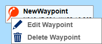Clicking the right mouse button brings up a menu. If a waypoint is underneath the mouse cursor, the waypoint menu is shown, with options to edit or delete the selected waypoint: