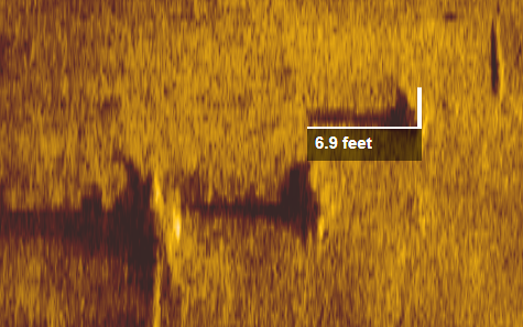 The side-scan sonar view also includes a function to estimate object height from the shadow, by using the right mouse button when in measure mode: