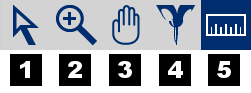 The left mouse button performs different actions, depending on the selected Mouse Mode. The mouse mode can be selected by clicking the appropriate button in the mouse mode panel in the window header: